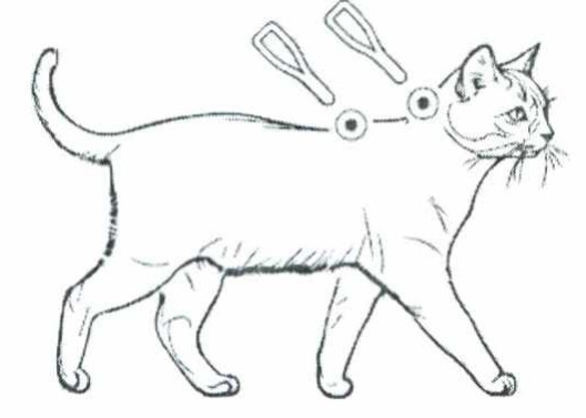 • у кошек массой более 6,0 кг — у основания черепа и между лопатками;